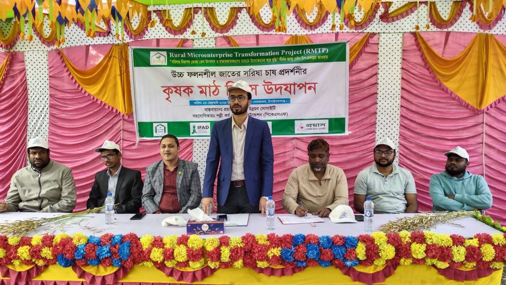 পলশায় কৃষক মাঠ দিবস অনুষ্ঠিত চাঁপাইনবাবগঞ্জে উচ্চ ফলনশীল জাতের সরিষা চাষ প্রদর্শনীর কৃষক মাঠ দিবস অনুষ্ঠিত হয়েছে। রবিবার জেলার সদর উপজেলার পলশায় রুরাল মাইক্রোএন্টারপ্রাইজ ট্রান্সফরমেশন প্রজেক্ট (আরএমটিপি) প্রকল্পের আওতায় উক্ত মাঠ দিবস উদযাপন করা হয়। মাঠ দিবসে প্রধান অতিথির বক্তব্য দেন সদর উপজেলা কৃষি অফিসার সুনাইন বিন জামান। অনুষ্ঠানে সভাপতিত্ব করেন প্রয়াসের কনিষ্ঠ সহকারী পরিচারক ও আরএমটিপি প্রকল্পের ফোকাল পার্সন ফারুক আহমেদ। এসময় অন্যানোর মধ্যে বক্তব্য দেন কৃষি সম্প্রসারণ কর্মকর্তা আনিসুল হক মাহমুদ, প্রয়াসের কৃষি কর্মকর্তা কৃষিবিদ মোস্তাফিজুর রহমান, আরএমটিপি প্রকল্পের প্রকল্প ব্যবস্থাপক সাজেদুর রহমান। অনুষ্ঠান সঞ্চালনা করেন স্মার্ট প্রকল্পের টেকনিক্যাল অফিসার রিফাত আমিন হিরা। এসময় আঞ্চলিক ব্যবস্থাপক ইমরান আলী, ইউনিট-১ ব্যবস্থাপক ওজিউর রহমান, স্মার্ট প্রকল্পের পরিবেশ কর্মকর্তা ইকবাল মাহমুদ, প্রয়াসের অফিসার শাহরিয়ার শিমুল, সহকারী কৃষি কর্মকর্তা মো মনিরুজ্জামান ও সিফাত উল্লাহ উপস্থিত ছিলেন। পল্লী কর্ম-সহায়ক ফাউন্ডেশন (পিকেএসএফ)’র সরিষার নিরাপদ ভোজ্য তেল উৎপাদন ও বাজারজাতকরণের মাধ্যমে উদ্যোক্তাদের আয় বৃদ্ধি শীর্ষক ভ্যালু চেইন উপ-প্রকল্পের আওতায় প্রয়াস মানবিক উন্নয়ন সোসাইটি এই মাঠ দিবসের আয়োজন করে।