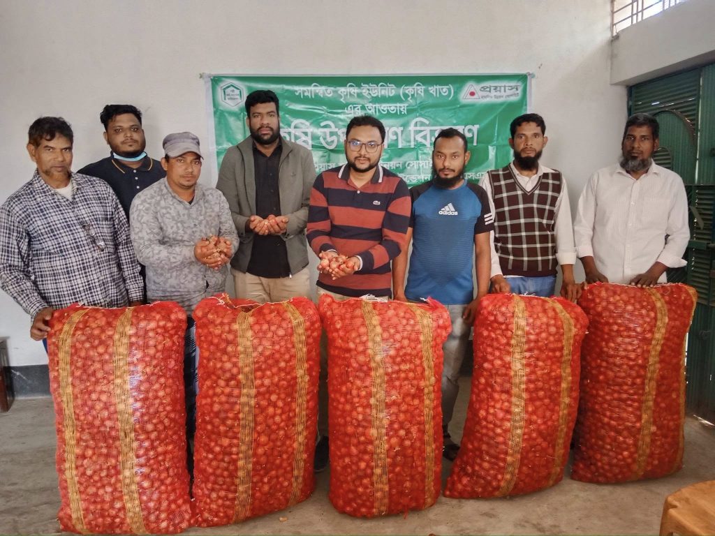 রহনপুরে প্রয়াসের পেঁয়াজ বীজ (কন্দ) বিতরণ