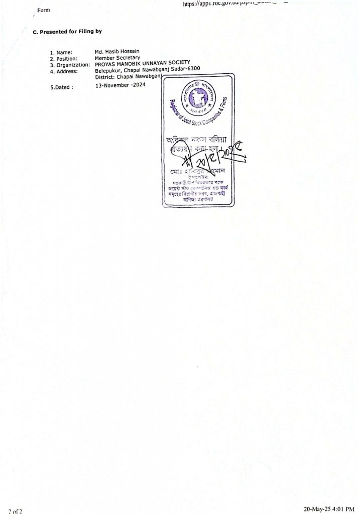 Name Of Entity: Proyas Manobik Unnoyon Society